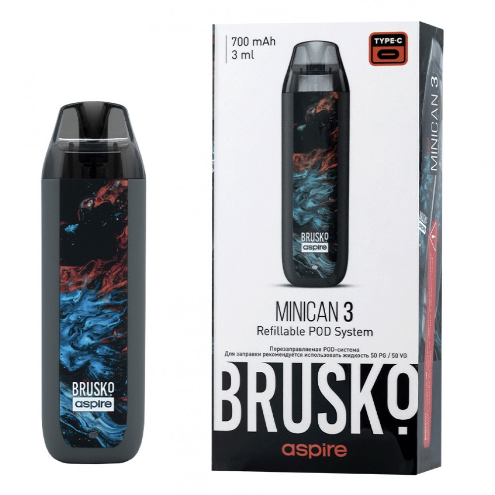 Перезаправляемая Под-Система Бруско Миникан 3 (Brusko Minican 3) 700 mah, Серый Флюид - купить в Калининграде